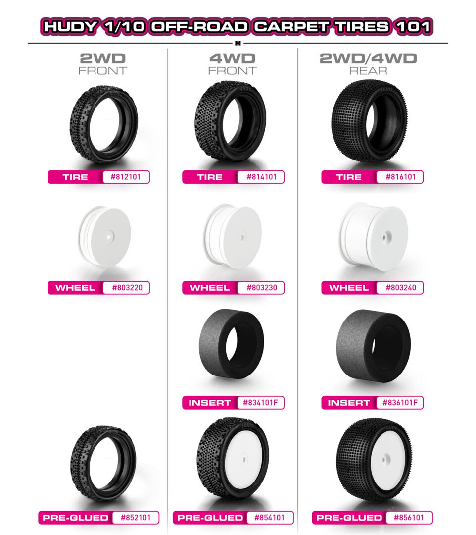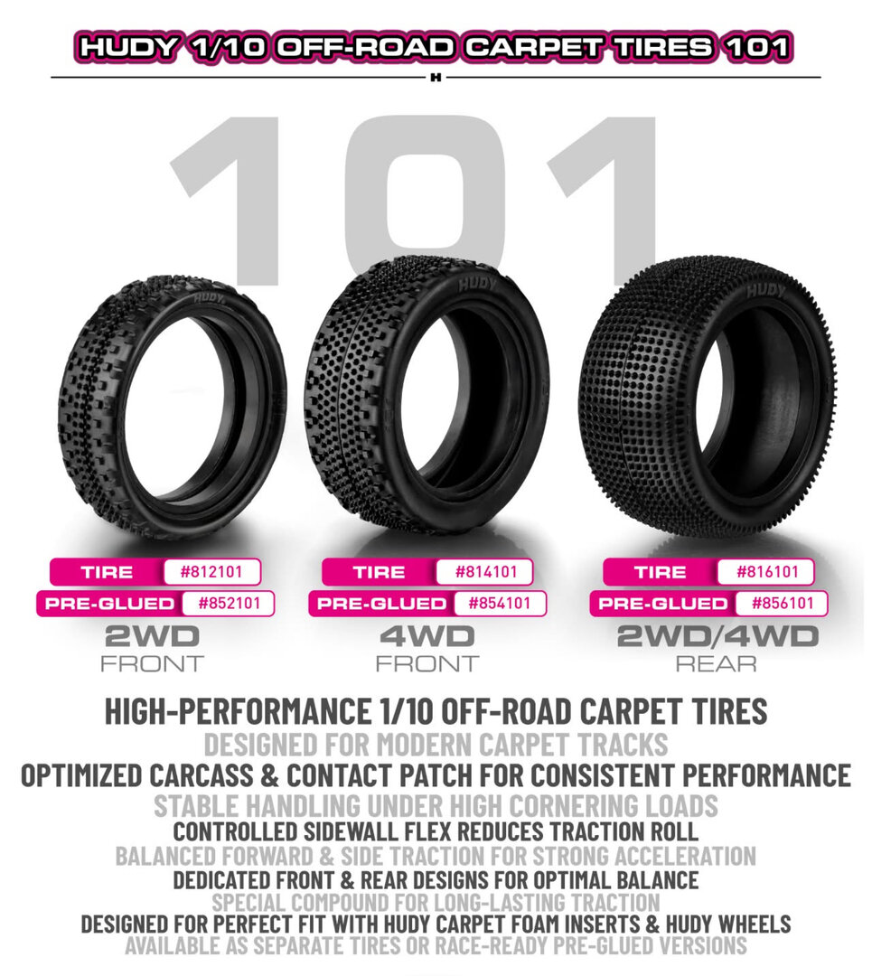 HUDY PREGLUED TIRE 2WD FRONT CARPET (2)